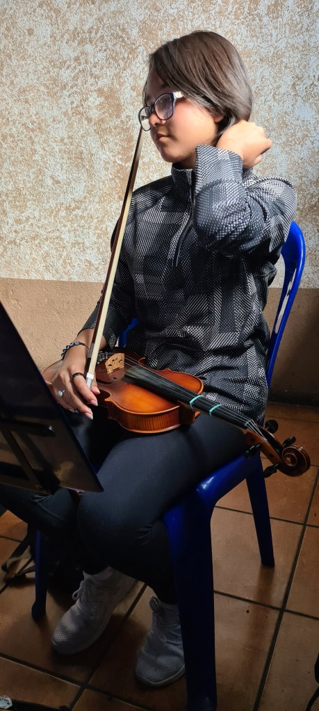 Ella envió 4 violines y 2 flautas transversales y de inmediato comenzamos a utilizarlos porque ya había niños esperando un instrumento adecuado para ellos.